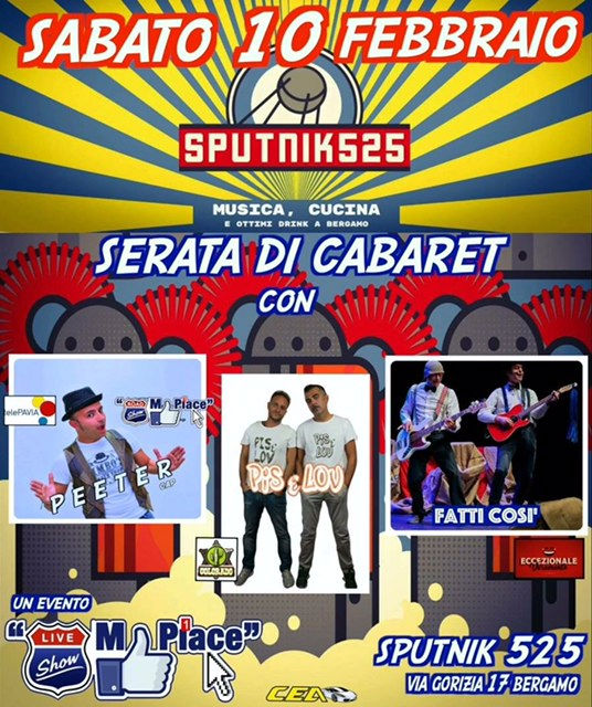 CABARET allo SPUTNIK525 di Bergamo con PEETER CAP, i PIS & LOV e i FATTI COSI'G.Luca Turconi12 gen 2018Tempo di lettura: 0 min